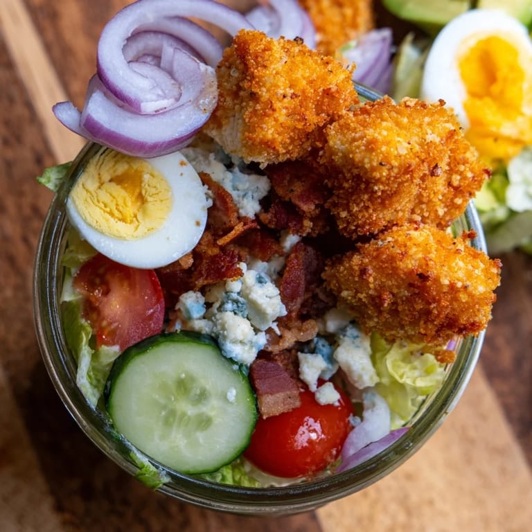 Save Enjoy the perfect combination of convenience and gourmet flavor with this Crispy Chicken Cobb Jar Salad. It is a satisfying, high-protein meal that brings a touch of restaurant quality to your everyday routine, ensuring you never have to settle for a boring lunch again.