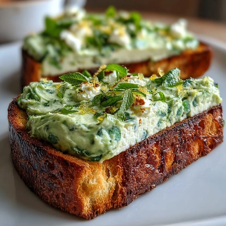Save Spring mornings always feel lighter when there's something green on the counter. I started making this toast on a whim one Saturday when I had leftover ricotta and a bag of forgotten peas in the freezer. The mint was from a pot on the windowsill that had grown wild over March. What came together in less than fifteen minutes turned into something I now crave constantly, bright and creamy and impossibly simple.