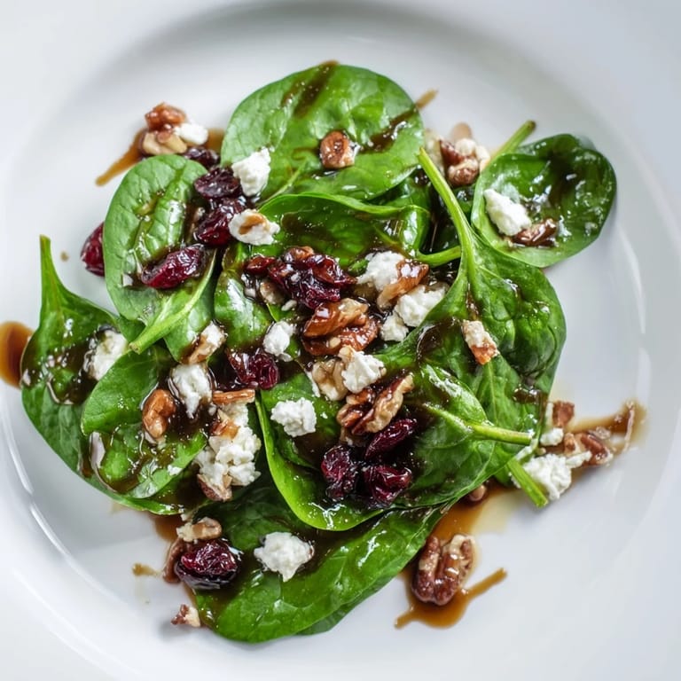 Save One Sunday afternoon, I tossed together what I thought would be a quick side salad and ended up with something that stole the show from the roasted chicken. The goat cheese melted slightly into the warm pecans, the cranberries added little bursts of sweetness, and suddenly everyone wanted the recipe. I've been making this spinach salad ever since, and it never fails to feel both effortless and impressive.